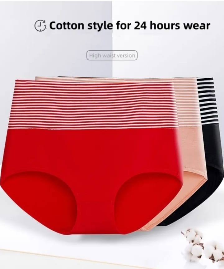 Experience all-day comfort with our High-Waist Striped Panties. The soft, breathable fabric feels gentle on your skin, while the high-waist design gives a secure and smooth fit without rolling. Stylish stripes add a fresh touch, making them perfect for everyday wear. Made with durable, easy-care materials, these panties are a must-have for both comfort and style